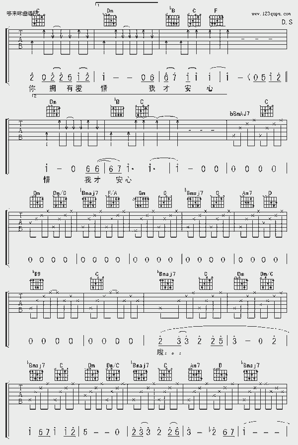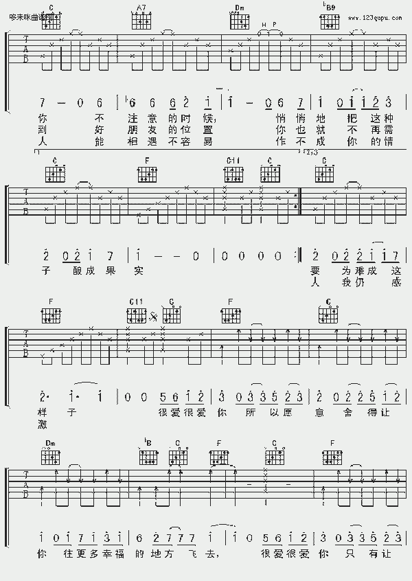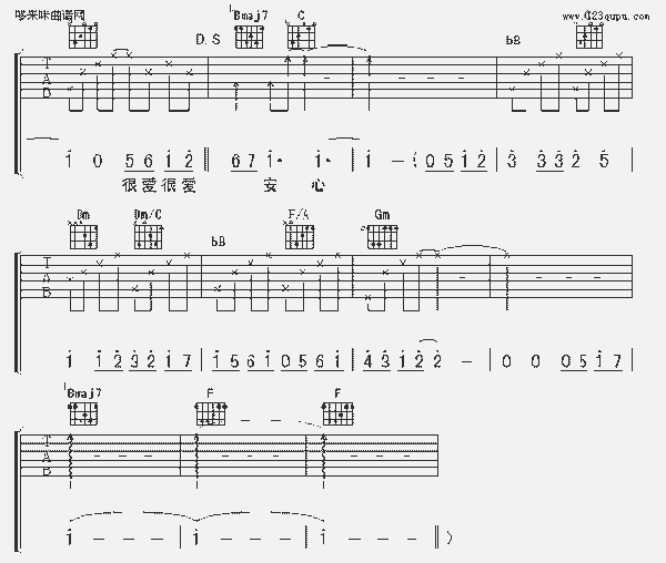 品书香曲谱资料器乐曲谱吉他曲谱 → 很爱很爱你(刘若英)