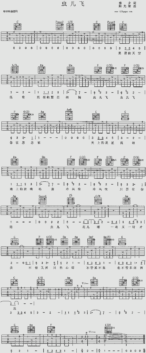 品书香 → 曲谱资料 → 器乐曲谱 → 吉他曲谱 → 虫儿飞