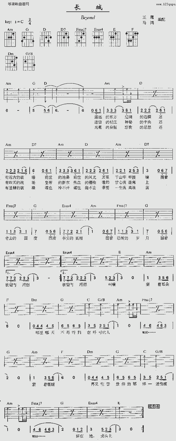 品书香曲谱资料器乐曲谱吉他曲谱 → 长城 (Beyond )